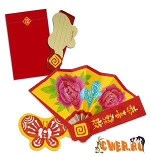 Трехмерная открытка - Раскрывающийся китайский веер и конверт под него