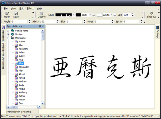 Chinese Symbol Studio - это инструмент, разработанный для перевода и генерирования китайского письма (Kanji). Он имеет полностью интегрированное рабочее место, что позволяет Вам работать эффективно и создавать профессиональные символы за минуты. Chinese Symbol Studio - это единственный инструмент перевода и создания китайских символов.