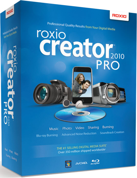 Roxio Creator 2010 Pro представляет собой решение для записи, редактирования и публикации персональных видеоматериалов, включая записи высокой четкости. Приложение обеспечивает запись дисков, резервное копирование данных, преобразование записей с разных носителей в формат MP3, редактирование аудиозаписей, создание меню для DVD, поддержку стандарта Blu-ray и высокую скорость кодирования видеопотока благодаря применению технологий ATI Stream и NVIDIA CUDA.