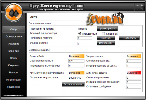 Программа Spy Emergency 2008 - быстро и безопасно удаляет spyware и другие интернет-инфекции c вашего компьютера. Spy Emergency защищает Вас против тысяч инфекций, включая: Spyware, Adware, Malware, ActiveX Components, Dialers, Keyloggers, Trojans... Интерфейс программы ненавязчив и прост, а функциональность и быстродействие просто поражают воображение!