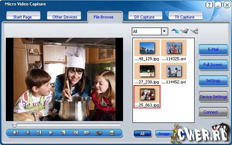 С данной программой Вы можете сделать запись видео и изображения с веб-камеры, телевизионной карты, цифровой камеры и других устройств захвата в режиме реального времени, и все захваченные видео файлы могут быть сохранены в формат AVI при использовании любого кодер-декодера сжатия.