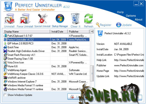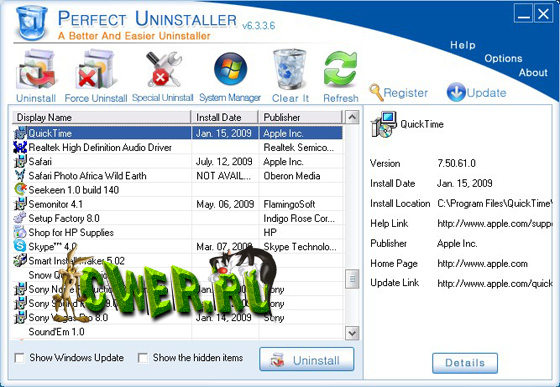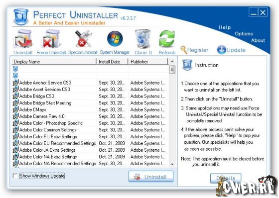Perfect Uninstaller - отличная программа для полного удаления нежелательных программ, которые нельзя удалить с помощью стандартного диалога удаления и установки программ Windows. С этой программой вы сможете удалять ненужные приложения в вашей системе быстрее и легче. Стандартный диалог установки и удаления программ часто не может удалить определенные приложения или сломанные ключи реестра, в отличие от данной утилиты, программа не только позволит вам удалить приложения, но и очистит ваш ПК от поврежденных записей в системном реестре, улучшая производительность и скорость вашей системы. Кроме того, с помощью этого приложения вы сможете узнать детальную информацию о том, какие файлы и записи реестра затронула установка той или иной программы. Интерфейс программы прост и легок в использовании.