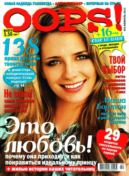 Ежемесячный журнал для стильных девушек, для тех, кто только открывает для себя мир глянцевых женских журналов. Oops! — это новые тенденции моды для молодых красавиц, советы экспертов по косметике и уходу за собой, а также специальные репортажи по самым важным проблемам, какие только могут волновать девушек на пороге взрослой жизни.