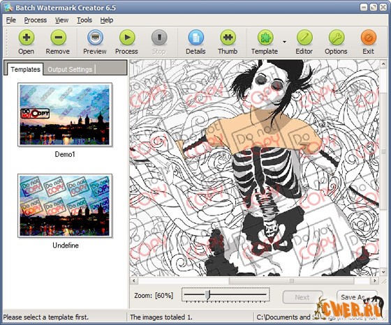 Batch Watermark Creator - программа для наложения "водяных" знаков на графические изображения. "Водяные" знаки могут быть размещены в любой части изображений, для них можно установить уровень прозрачности, добавить тень. Программа позволяет также выполнять несложные операции по корректировке изображений настраивать яркость, насыщенность, оттенки. Есть возможность пакетного наложения "водяных" знаков на изображения.