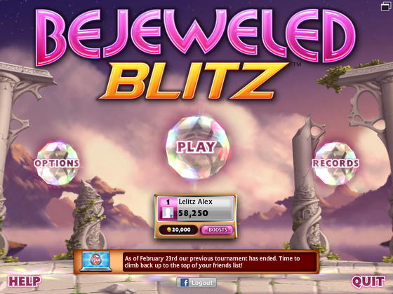 Новая игра жанра match-3 от PopCap Games с возможностью подключения к серверу Facebook (при наличии аккаунта, который несложно завести) для игры против своих друзей и знакомых. Также вы можете покупать бонусы за игровые монеты, если вам не хватает буквально пяти секунд, чтобы набрать действительно большое количество очков и занять первое место в таблице рекордов ваших друзей. Играть можно и без подключения к Facebook.