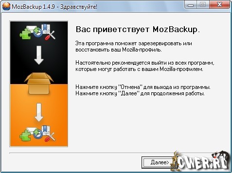 MozBackup (Mozilla Backup) - это утилита для создания резервной копии профилей таких программ как: MozSuite/SeaMonkey, Mozilla Firefox, Mozilla Thunderbird и Netscape. Она поможет вам сохранять почту, закладки, адресные книги, пароли и т.д. Работает под Windows 95 и выше. Программа абсолютно бесплатная.