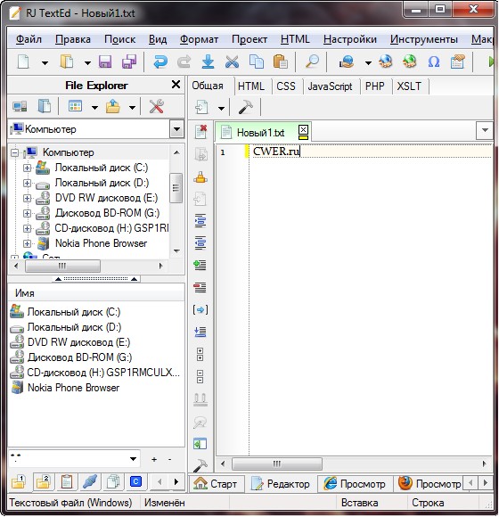 RJ TextEd - юникодный редактор со множеством возможностей для редактирования текста, html-документов, java-скриптов и т.д. Открытие множества документов в многовкладочном окне, подсветка и проверка синтаксиса, подсказки при вводе кода, закладки, неограниченное undo/redo, редактор css, html-превью, встроенный ftp-клиент, поддержка email, поддержка drag'n'drop, поддержка скинов и многое другое.