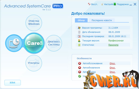 Advanced SystemCare(ранее Advanced WindowsCare) - программа, которая включает в себя множество модулей для настройки, оптимизации и повышения производительности компьютеров, находящихся под управлением ОС Windows 2000/XP/Vista.