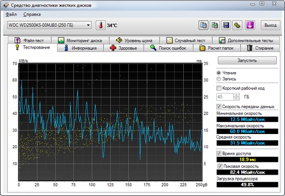 HD Tune Pro - программа для планомерного детального тестирования текущей работоспособности и производительности жестких дисков с различными интерфейсами (SCSI, SATA или IDE), а так же карт памяти и flash-дисков. Программа производит замер и наглядно отображает такие параметры накопителей, как скорость передачи данных, время чтения, записи и время доступа, уровень загрузки процессора, температуру винчестера, показывает в виде сводной таблицы данные поставляемые S.M.A.R.T, позволяет сканировать жесткие диски и другие накопители на предмет наличия ошибок, выдает информацию о версии firmware, серийном номере, объеме диска и подробности по потребителям полезной площади, его КЭШа, возможном и активном режимах передачи данных и т д. и т.п.