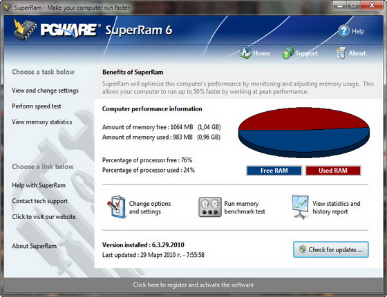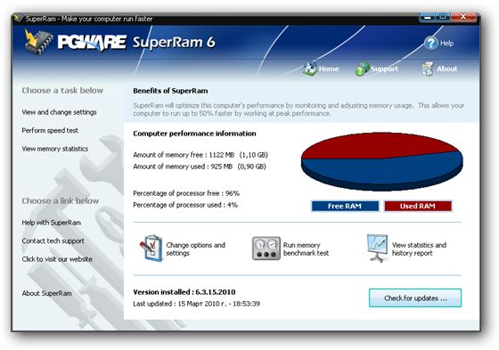 SuperRam - это инструмент для оптимизации и управления компьютерной памятью. Работать с программой просто - с ней справится даже человек, никогда раньше не работавший с подобными утилитами. Вам будет достаточно выбрать объем памяти, который будет использоваться, и объем, который следует освободить, после чего нажать кнопку "ОК". Остальное сделает SuperRam.