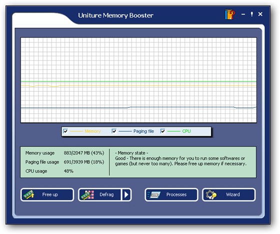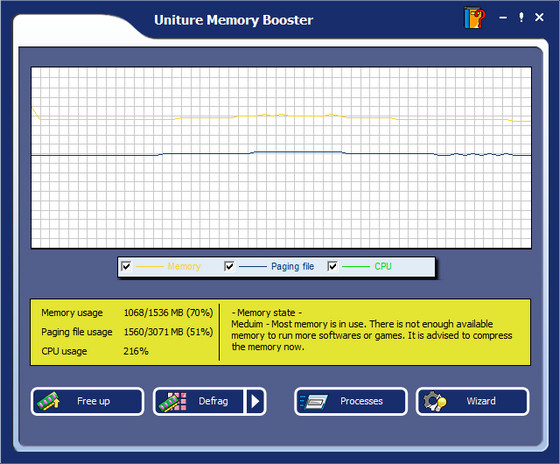 Uniture Memory Booster очищает, освобождает и оптимизирует ОЗУ вашего персонального компьютера, давая ему работать быстрее и максимально эффективно. Программа непрестанно проверяет оперативную память компьютера, и как только количество свободной оперативной памяти уменьшается, она завершает ненужные процессы, увеличивая быстродействие.