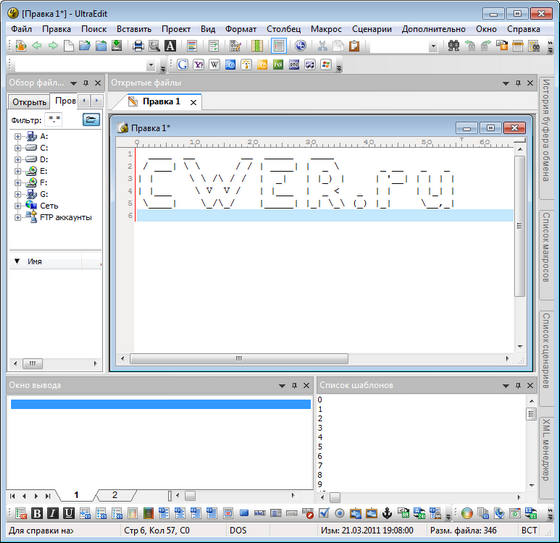 UltraEdit - мощный многооконный текстовый редактор с гибкой системой настроек, который также имеет встроенный FTP клиент для закачки документов на ваш сервер. С помощью этой программы вы сможете редактировать текстовые, HEX и HTML файлы размером до 2 гбайт. В программе имеется функция подсветки синтаксиса для различных языков, включая C/C++, VB, HTML, Java, Perl, FORTRAN и LaTex. Кроме того, предусмотрена возможность подключения дополнительных словарей с синтаксисом других языков, библиотек тегов и макросов. Программа является гибкой и легкой в настройке, а изысканный пользовательский интерфейс программы предоставляет легкий и быстрый доступ к самым важным функциям программы.
