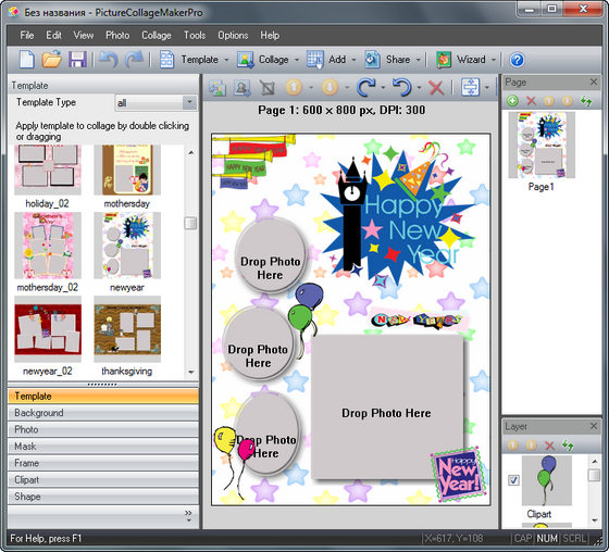 Picture Collage Maker - простая в использовании программа для создания коллажей из ваших фотографий. Простой интерфейс программы и множество шаблонов позволят легко создавать разнообразные фотоколлажи (календари, поздравительные открытки, пригласительные билеты, постеры и т.д.) даже неопытным пользователям.