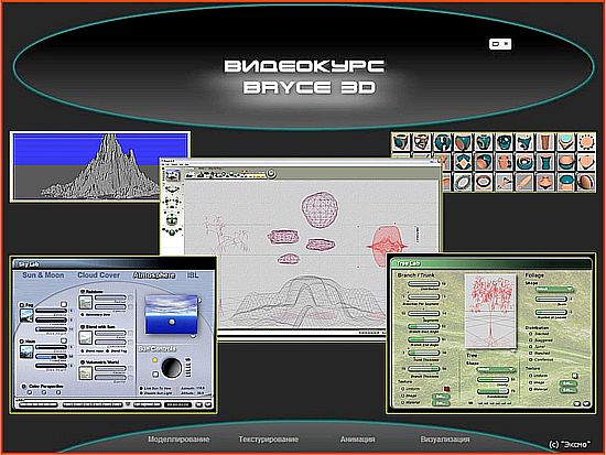 Вам нужно создать проект усадьбы или сада, но вы не знаете, с чего начать? Этот обучающий курс позволит вам быстро освоить все тонкости ландшафтного проектирования в программе трехмерного моделирования Bryce 3D. Видеокурс состоит из 4 разделов: "Моделирование", "Текстурирование", "Анимация" и "Визуализация", каждый из которых в свою очередь делится на подразделы (уроки). Всего их двадцать. Не требует установки.