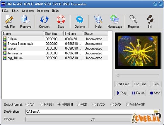 Новая версия программы для преобразования RM-файлов в формат AVI, MPEG, WMV, VCD, DVD. Поддерживает пакетное преобразование файлов, предварительный просмотр конечного файла, а также множество других функций.