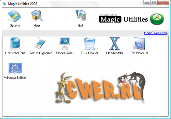 Magic Utilities - набор утилит для настройки системы и ее очистки от мусора. Включает в себя Uninstller Plus - утилиту для корректного и полного удаления ненужных программ, StartUp Organizer - утилиту для работы с программами, запускаемыми при загрузке, Process Killer - средство для просмотра и управления запущенными процессами, а также Disk Cleaner - модуль для очистки жесткого диска от накопившегося на нем хлама.