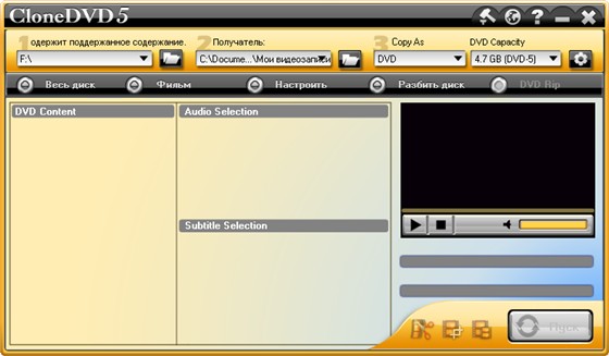 CloneDVD - программа предназначена для создания полностью идентичных копий DVD-фильмов и их записи на DVD-носители. Программа может полностью переписать содержимое диска, что позволяет создавать копии в режиме 1:1 (со всеми меню, субтитрами и т.д.). CloneDVD поддерживает работу с большинством существующих приводов, обладает хорошим быстродействием и качеством записи. Имеется русский интерфейс. В данной версии улучшено чтение проблемных секторов на некоторых приводах, исправлены ошибки, обновлены переводы, улучшен контроль над скоростью,и многое другое. Программа имеет мультиязычный интерфейс включая Русский.