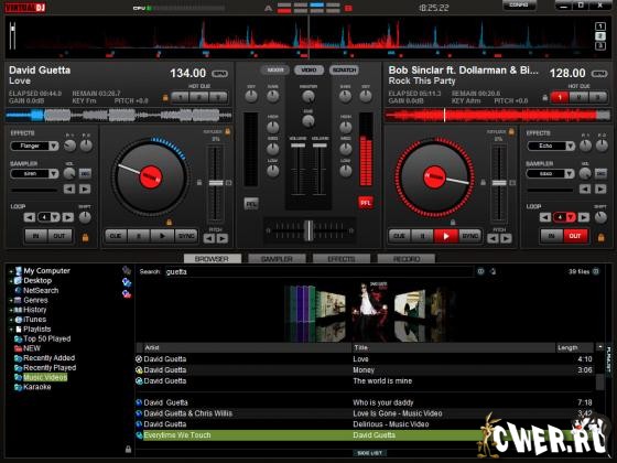 Virtual DJ - программа для диджеев, позволяющая микшировать музыку в режиме реального времени с использованием эффектов, переходов и многого другого. Программа отлично подходит как для профессиональных диджеев, так и для новичков. Virtual DJ содержит в себе множество аудио-инструментов, эффектов и примочек, созданных специально для ди-джеев, есть также возможность создавать музыкальные треки из MP3-файлов во встроенном плеере, программа позволяет разгонять музыку под нужный темп или увеличивать скорость звучания в ручном и в автоматическом режиме. Поддерживается возможность синхронизации треков по темпу и скорости с помощью нажатия кнопки Sync. Результат готового трека можно записать в WAV или MP3 формат.