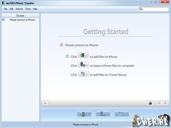 ImTOO iPhone Transfer - программа для обмена аудио и видео файлами между компьютером и Apple iPod проигрывателем. Позволяет передавать из компьютера в телефон, а также, в обратную сторону видео, музыку, любые файлы и делать бекапы телефона на PC.