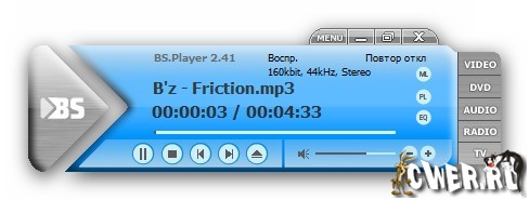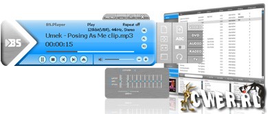 BS Player - мультимедийный проигрыватель, позволяющий воспроизводить практически любые мультимедийные файлы, но для этого нужно, чтобы в системе были установлены соответствующие кодеки. Программа может работать с плейлистами, уменьшать или увеличивать видеокартинку, воспроизводить потоковое видео из интернета, при необходимости показывать субтитры. Если нужно, то можно расширить опции плеера, подключая к нему различные плагины. Данный мультимедийный плеер не требователен к системным ресурсам, поддерживает смену скинов. Также позволяет автоматически распаковывать и воспроизводить содержимое RAR архивов. Профессиональная версия плеера предлагает возможности тонкой настройки эквалайзера, опцию захвата видео и аудио с ТВ-тюнера, цифровой камеры и прочего, а также улучшенную поддержку субтитров и VMR9. Имеет поддержку смены скинов интерфейса и мультиязычность, включая поддержку русского языка.