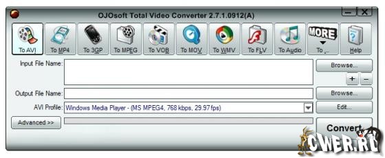 OJOsoft Total Video Converter - мощная программа, которая позволяет конвертировать любые видеофайлы в форматы 3gp (формат мобильных телефонов и наладонников), mp4, psp, iPod, swf, flv, DVD, VCD. Программа поддерживает чтение и проигрывание большого количества видео и аудио форматов (3gp, mp4, psp, iPod, swf, flv, DVD, VCD, mp3, ac3, ogg, wav, aac...), а также конвертирует их в популярные video/audio форматы и форматы мобильных телефонов и наладонников.