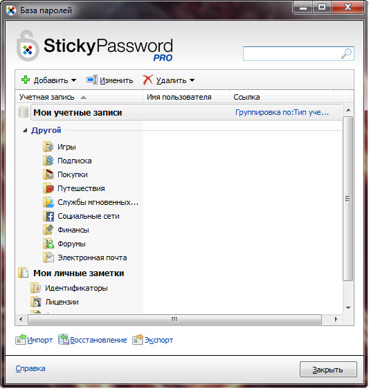 Sticky Password сохраняет и защищает все ваши персональные данные (например, пароли, имена пользователей, номера интернет-пейджеров, контактные данные, номера телефонов и т. д.). Sticky Password связывает пароли и учетные записи с программами Microsoft Windows или веб-страницами, для которых они используются. Вся информация в зашифрованном виде хранится в базе паролей, доступ к которой защищен мастер-паролем. Персональные данные легко доступны, если база паролей разблокирована. После запуска веб-страницы или программы, Sticky Password автоматически вводит пароль, имя пользователя и другие персональные данные. Таким образом, вам достаточно запомнить один пароль и не нужно запоминать остальные.