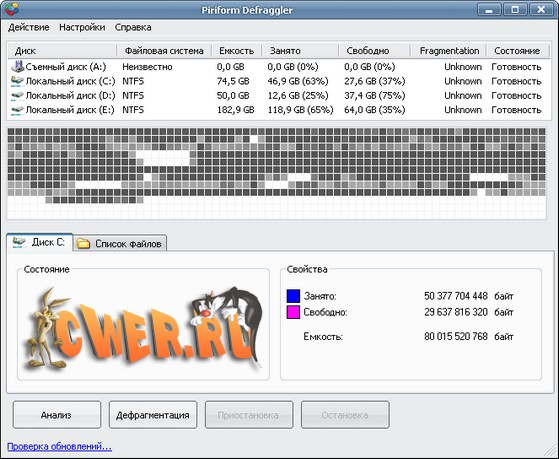 Defraggler - программа для дефрагментации жестких дисков. По словам разработчика, Defraggler отличается от других продуктов на рынке, прежде всего, тем, что позволяет дефрагментировать не только жесткий диск целиком, но и отдельные файлы. Программа предлагает простой и понятный интерфейс, поддерживает Windows 2000, 2003, XP и Vista, в том числе 64-битные версии, работает с файловыми системами FAT32 и NTFS.
