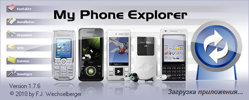 MyPhoneExplorer - программа для управления мобильными телефонами Sony Ericsson. Официально предназначена для использования с телефонами K700, K750, W800, но с не меньшим успехом работает и с другими моделями. В программе имеется файловый менеджер, редакторы СМС, телефонной книги, профилей, модуль для сохранения резервных копий всего, что есть в телефоне. Возможна синхронизация данных с MS Outlook и Outlook Express, Кроме этого, MyPhoneExplorer в режиме реального времени выдает подробную информацию о телефоне, состоянии памяти, степени сигнала, уровне заряда батареи и т.п. Поддерживается соединение с телефоном через кабель, bluetooth или ИК-порт. Интерфейс MyPhoneExplorer - многоязычный.