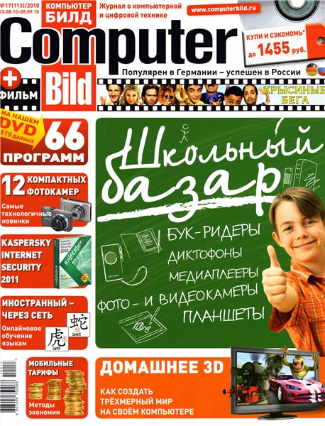 Computer Bild - крупнейший европейский журнал о компьютерах. Вышел на рынок компьютерных изданий с уникальной концепцией и предназначен для людей, которые интересуются компьютерами, Интернетом, средствами телекоммуникаций, аудио-, видео- и фототехникой. Каждые две недели предлагаются новости индустрии, тесты оборудования и программ, обучающие курсы и практические советы. Издание интересно как новичкам, так и опытным пользователям. Тема номера: 50 полезных советов на каждый день...