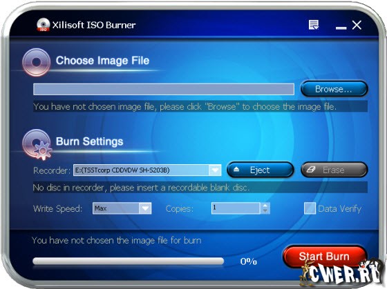 Программа Xilisoft ISO Burner - позволяет легко записывать любые файлы на CD-R, CD-RW, DVD-R, DVD + R, DVD-RW , DVD + RW, DVD + R DL. Она поддерживает почти все форматы, включая IMG, BIN / CUE, CDI, MDF, NRG, B5i, B6i, и DMG.