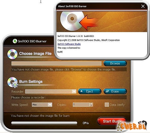 ImTOO ISO Burner Portable - простая в использовании программа для записи ISO образов на CD и DVD диски. Поддерживает работу с CD, DVD+-R/RW и DVD+R DL. Кроме формата ISO, программа позволяет записывать на ваши диски образы форматов BIN/CUE, IMG, MDF, NRG, CDI, B5i, B6i, DMG. Программа обеспечивает вам максимальную скорость записи на столько, на сколько позволяют это сделать ваши диски и записывающие устройства.