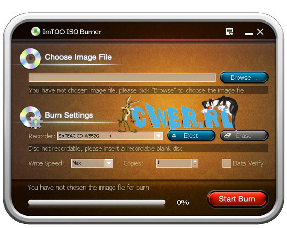 ImTOO ISO Burner - утилита с интуитивно понятным интерфейсом для записи образов в формате ISO на различные типы носителей: CD-R, CD-RW, DVD-R, DVD+R, DVD-RW, DVD+RW и DVD+R DL. Поддерживается запись дисков CD и DVD с данными (в том числе — создание загрузочных дисков), а также мультимедийных дисков.