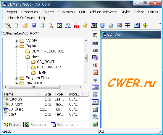 Профессиональная программа, позволяющая создавать разнообразные загрузочные меню (autorun) для записываемых вами компакт-дисков. Программа имеет много встроенных шаблонов. Меню представляют из себя исполняемый (exe) файл, можно встроить свою картинку, практически любые виды меню, текст, графику. Программа имеет достаточно простой интерфейс.