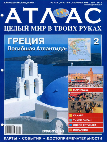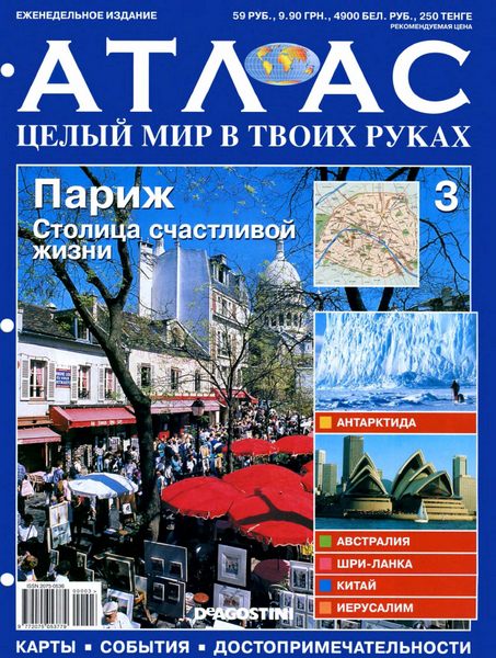 "Атлас. Целый мир в твоих руках" - еженедельный журнал, представляющий собой необычный путеводитель по нашей планете. Гид разбит на разделы, каждый из которых содержит блок современных знаний о географии, политике, культуре, экономике и истории стран и регионов. Десятки карт, сотни уникальных снимков и тысячи фактов, изложенных доступным языком в Атласе. Это незаменимое справочное издание и увлекательное чтение для тех, кто хочет познакомиться с красотами и тайнами нашей планеты.