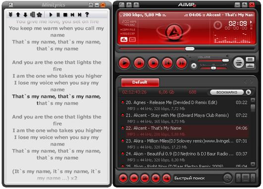 Minilyrics - небольшая надстройка над наиболее популярными медиа проигрывателями, в том числе для Winamp, Aimp, Windows Media Player, iTunes, foobar2000 и многих других известных медиа-плееров, позволяющая видеть текст любых песен которые на данный момент проигрываются.