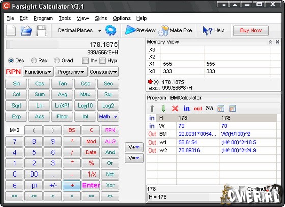 Farsight Calculator - удобный в работе программируемый Калькулятор, который позволяет сохранять процесс вычисления как программу или функцию, и выполнять арифметические операции любым RPN (Reverse Polish Notation) или ALG (Алгебраический) методом. Программа поддерживает больше чем сто функций, включая алгебраические, тригонометрические, гиперболические, статистические, и финансовые функции. Кроме того, Farsight Calculator содержит ряд мощных специализированных инструментов.