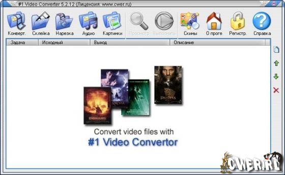 #1 Video Converter — удобная многофункциональная программа для работы с видео. В #1 Video Converter существует несколько основных направлений в работе: конвертирование видео, извлекание аудио дорожки, создание секвенции графических файлов, нарезка и склеивание видеофайлов. #1 Video Converter поддерживает форматы AVI, MPEG1,MPEG2, VCD, SVCD, DVD, WMV, ASF. Для трёх основных действий программы (конвертирование видео, нарезка и склеивание) предусмотрены пошаговые мастера, которые помогают быстро выбрать все необходимые настройки операции.