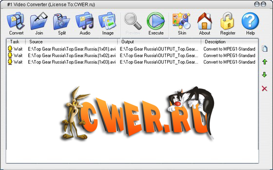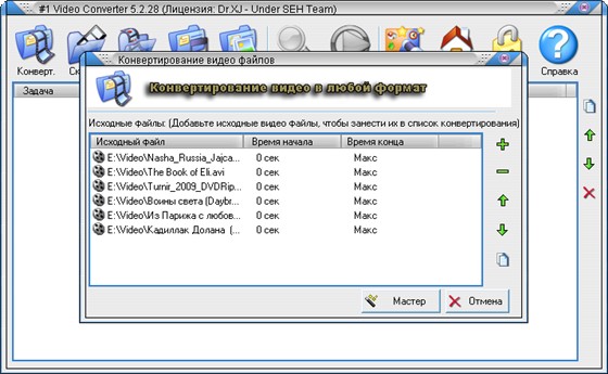 #1 Video Converter - удобная многофункциональная программа для работы с видео. В #1 Video Converter существует несколько основных направлений в работе: конвертирование видео, извлекание аудио дорожки, создание секвенции графических файлов, резка и склейка видеофайлов. #1 Video Converter поддерживаем форматы AVI, MPEG1,MPEG2, VCD, SVCD, DVD, WMV, ASF. Для трёх основных действий программы (конвертирование видео, резка и склейка) предусмотрены пошаговые мастера, которые помогают быстро выбрать все необходимые настройки операции.