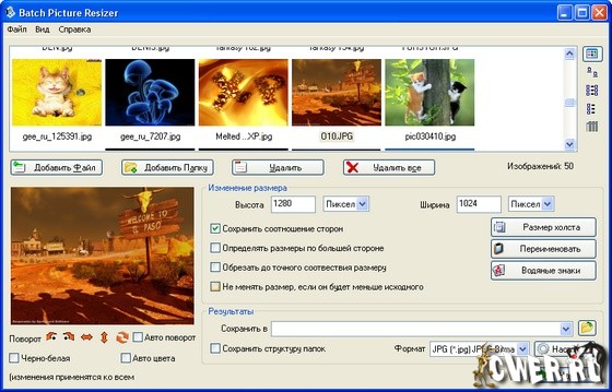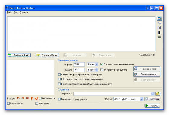Batch Picture Resizer - программа для изменения размеров изображений, преобразования форматов, пакетной обработки фото, переименования файлов и добавления водяных знаков. Batch Picture Resizer работает с форматами JPG, BMP, TIFF, GIF, PNG, PCX, TGA и др. Утилита может не только изменить размеры фотографий, сохраняя высокое качество и применяя различные алгоритмы интерполяции, но и повернуть или зеркально отразить изображения без потерь качества. Batch Picture Resizer позволяет одним кликом мыши оптимизировать контраст, яркость и цветовые уровни, преобразовать изображения в черно-белый формат, добавить водяные знаки.
