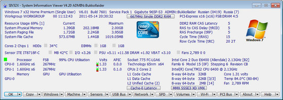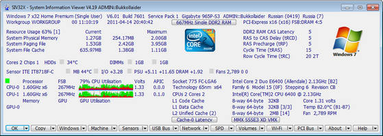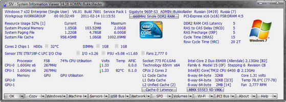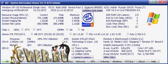 SIV (System Information Viewer) - это небольшая программа предоставляет информацию о широком наборе характеристик компьютера: об установленном оборудовании и программах, информацию с датчиков температуры, напряжение PSU, процессора, памяти, информацию об используемой памяти, жестких дисках, сети и многое другое.