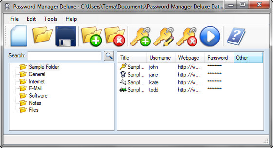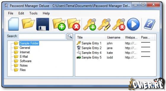 Password Manager Deluxe - программа является менеджером паролей. Позволяет хранить логины и пароли, шифровать файлы, создавать резервные копии баз данных, экспортировать данные в HTML, XML, CSV и текстовые файлы. Созданную базу можно использовать на других ПК. Помимо этого программа включает в себя генератор паролей. Не беспокойтесь о том, что вы снова забыли пароль! Password Manager Deluxe сможет для вас: запомнить все имена пользователя и пароли, с легкостью найти нужный логин, автоматически заходить на веб страницы, используя технологию Drag-and-Drop, защищать ваши пароли и файлы. Ваши данные будут защищены 256 - битным алгоритмом AES/Rijndael шифрования.