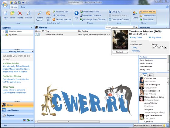 Movie Label — мощная программа для создания каталога из вашей коллекции фильмов. От пользователя лишь требуется указать названия, имеющихся в его коллекции фильмов. После чего Movie Label автоматически соберет информацию о ваших фильмах из онлайновой базы данных и загрузит информацию в каталог. Таким образом, вы сможете собрать не только краткие описания фильмов, состав актеров, режиссеров, сценаристов и прочего, но также загрузить обложку фильма, указав продолжительность киноленты, информацию о кастинге и многое другое. В случае, если собранная информация покажется вам неполной, имеется возможность ручного добавления информации о каждом фильме. Интерфейс Movie Label 2011 многоязычный с поддержкой русского языка.