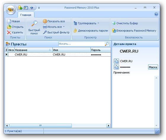 Password Memory - мощный менеджер паролей, сохраняющий все пароли, которые Вы используете на компьютере, в файл формата XML, HTML, Excel и т.д. Программа рекомендуется для людей, работающих на разных компьютерах, например дома и на работе. Сохранять пароли в браузере или программах, как известно, не безопасно. Но с программой Password Memory это уже не проблема. Вы можете установить её на флешку, и подключать к компьютеру, с которым работаете. Программа сама будет показывать Вам все пароли. В программе поддерживается многопользовательский режим работы. Доступ к своим данным можно защитить паролем.