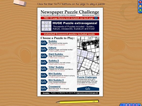 Невероятная головоломка, включающая в себя 8 различных игр, таких как судоку, какуро, судоку-киллер, гигантский судоку, судоку-x, мини-судоку и другие кроссворды! С более чем 46000 головоломок и огромным количеством кроссвордов игра напряжет Ваш мозг до предела. Примите участие в 20 захватывающих играх, чтобы открыть бонусную книгу пазлов!