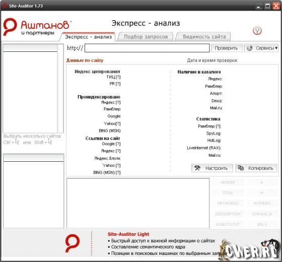 При помощи утилиты Site-Auditor Вы сможете быстро собрать данные, необходимые для оценки видимости сайта в Рунете.