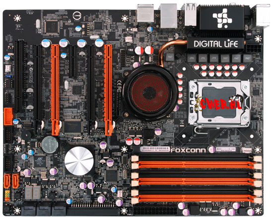 Компания Foxconn официально представили своё детище, основанное на передовом наборе микросхем Intel X58 Express с южным мостом ICH10R и рассчитанное на совместную работу с процессорами Intel Core i7/Core i7 Extreme под Socket LGA1366 на микроархитектуре Nehalem.