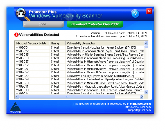 Windows Vulnerability Scanner - программа для выявления в ОС Windows уязвимых мест в безопасности. После сканирования системы Windows Vulnerability Scanner выводит список всех патчей и обновлений, которые требуются для устранения найденных дыр в безопасности системы. Кроме того, программа показывает степень риска, которую представляет та или иная уязвимость, а также приводит ссылки на загрузку патча, необходимого для устранения этой уязвимости. Результаты сканирования Windows Vulnerability Scanner сохраняет в лог-файл в формате HTML. Программа совместима с Windows Vista Home Basic, Windows Vista Home Premium, Windows Vista Ultimate, Windows Vista Business, Windows XP (Home & Professional), Windows 2000 Server & Professional and Windows 2003.