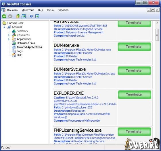 Сколь бы быстро ни пополнялась база сигнатур в антивирусной программе и сколь бы интеллектуальным ни был реализованный в ней эвристический метод детектирования, все равно какой-нибудь особо изощренный вредонос может успеть сделать свое черное дело до того, как будет выявлен и обезврежен. Иное дело, если в системе безопасности применяется сразу несколько инструментов обеспечения безопасности. В этом случае осуществить свою зловредную миссию трояну или бекдору будет крайне затруднительно. Особенно если имеется средство контроля буквально за каждым процессом, такое, например, как утилита GeSWall.