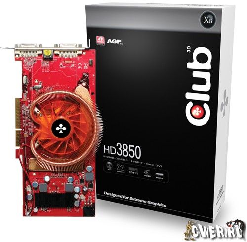 Модель Club 3D Radeon HD 3850 512MB GDDR3 AGP Edition (код CGA-3852DDF) построена на базе созданного по 55-нм технологии чипа RV670 PRO с 320 потоковыми процессорами и укомплектована памятью GDDR3 объёмом 512 Мб с 256-битным интерфейсом.