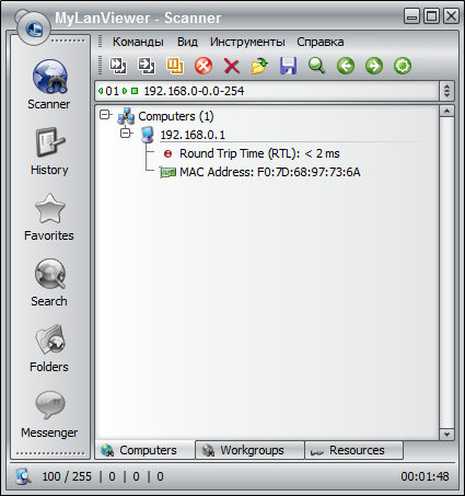 MyLanViewer - это мощный сетевой сканер, который отображает в своем окне все компьютеры вашей сети и показывает их имена, IP-адреса, MAC-адреса, общие ресурсы и другие технические детали для каждого компьютера.
